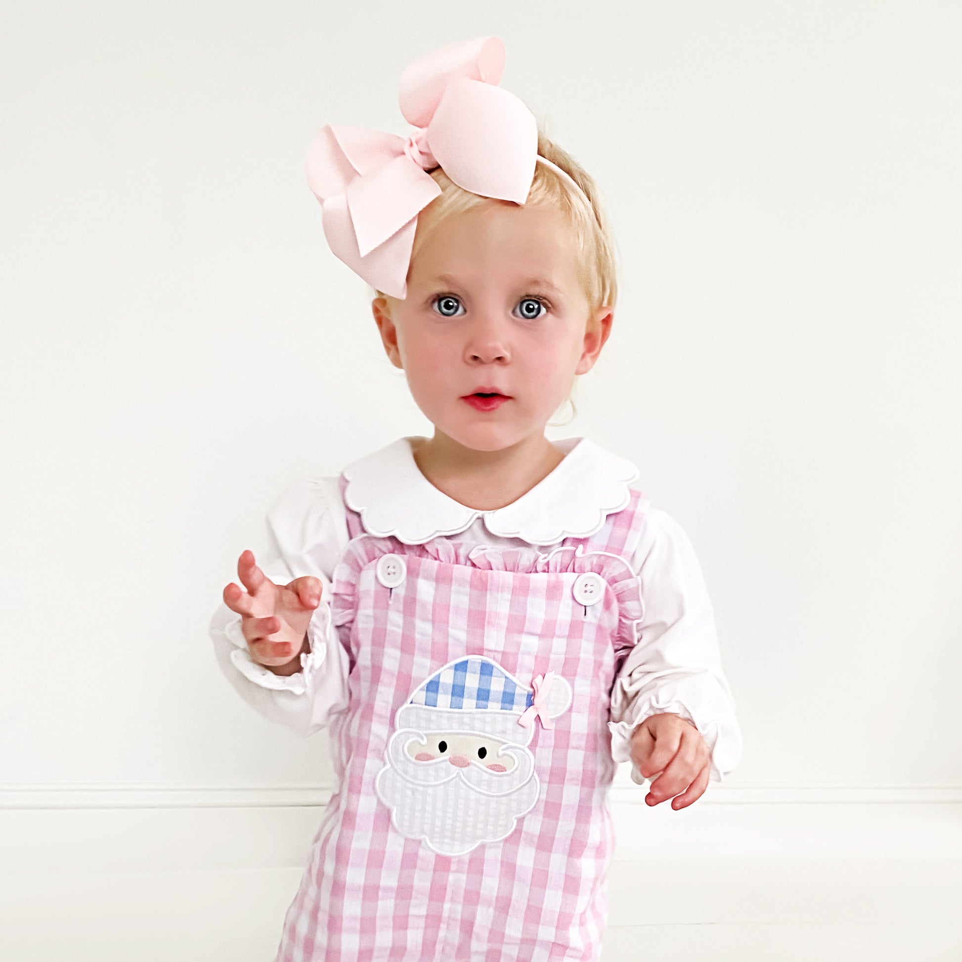 Two outfits in one! Our Reversible Longall features an applique Thanksgiving turkey on one side and reverses to a Christmas Santa applique. A pastel spin on two of our favorite holidays! Accented with ruffles and bows, Pairs perfectly with our Sweetheart Top.